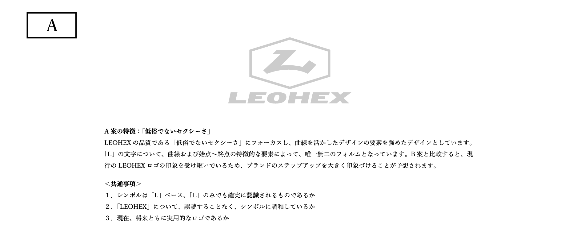 旧ロゴとの比較において、当初合意した「L単体での識別性」と「LEOHEXを誤読しない」という要件を満たし、現在・将来を見据えて活用可能なロゴが完成しました。